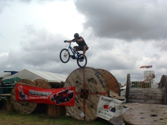 Here are some pictures that I got while doing a demo over friday and sunday with Dave Marshall and Nathan Roach and Rob Brodie on sunday. Also the moto trials guys that organiseded it were riding with us. The pictures are not the best but shows some of the stuff we were riding and we had fun doing it. Dave wheel swap Dave turning on the rear wheel Dave on the see saw Nathan hooking up the cage Nathan dropping of the cage Nathan tapping? Nathan dropping Rob hooking Nathan up to front Nathan wheel swapping Dave gap from pipe to cage Nathan Dave dropping Nathan up to rear Rob dropping Coments welcome.